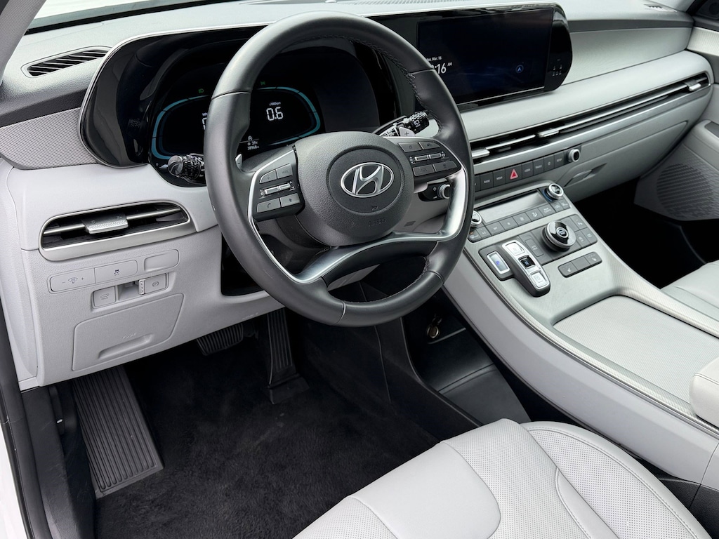 OPTION GROUP 01 -inc: standard equipment, HYPER WHITE, GRAY/BLACK, H-TEX LEATHERETTE SEAT TRIM, Wireless Phone Connectivity, Wheels: 18" x 7.5J Painted Finish Alloy, Valet Function, Turn-By-Turn Navigation Directions, Trunk/Hatch Auto-Latch, Trip Computer, Transmission: 8-Speed Automatic w/SHIFTRONIC -inc: paddle shifters, shift-by-wire and drive mode select (comfort, eco, sport, smart). This Hyundai Palisade has a strong Regular Unleaded V-6 3.8 L/231 engine powering this Automatic transmission.