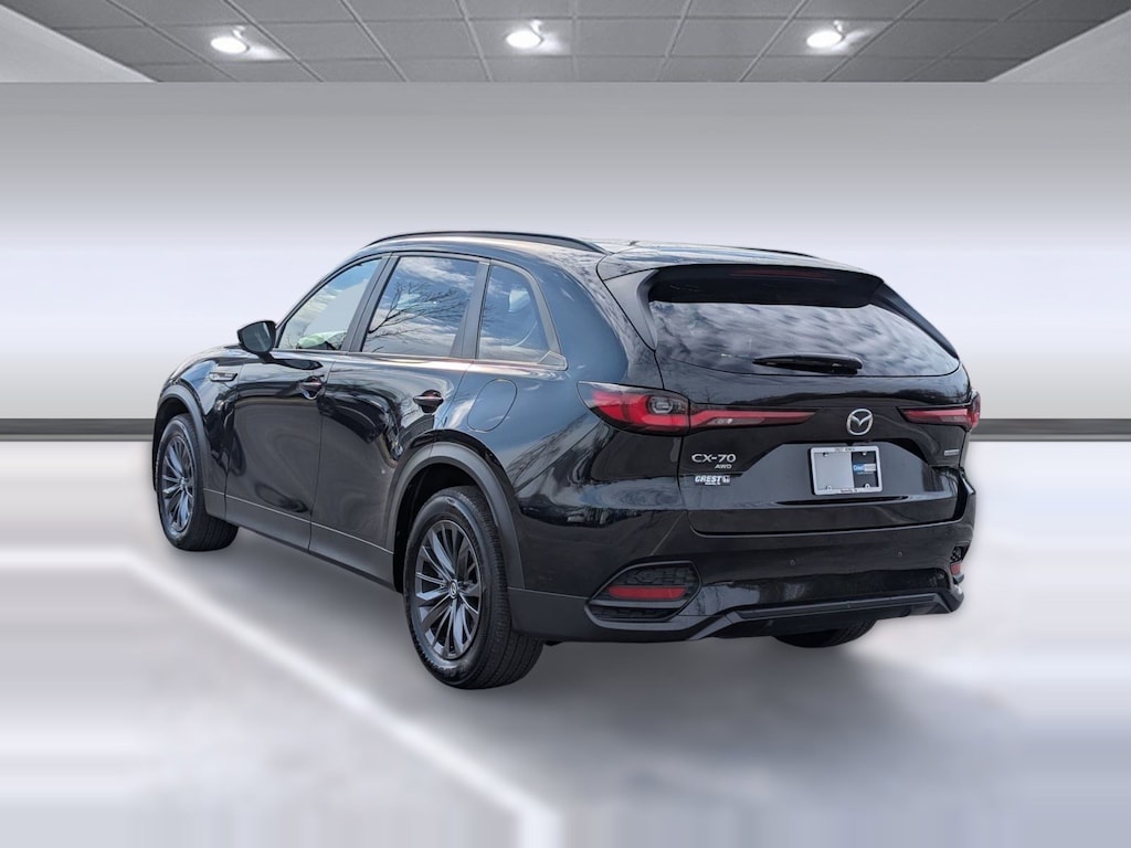 JET BLACK MICA, Wireless Phone Connectivity, Trunk/Hatch Auto-Latch, Trip Computer, Transmission w/Driver Selectable Mode, Towing Equipment -inc: Trailer Sway Control, Tires: 265/55R19, Tire Specific Low Tire Pressure Warning, Tailgate/Rear Door Lock Included w/Power Door Locks, Steel Spare Wheel. This Mazda CX-70 has a strong Intercooled Turbo Gas/Electric I-6 3.3 L/200 engine powering this Automatic transmission.